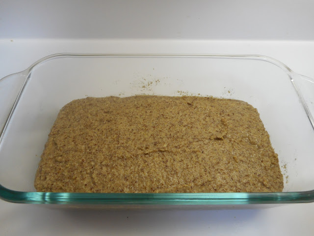 Set oven to 350 F. Mix wet ingredients, then add in dry ingredients and mix. Batter will be thick. Transfer to 8x4in loaf pan (1.5 quart) and bake for about 40-45 minutes. It will be firm around the top and edges. Let it cool before slicing.